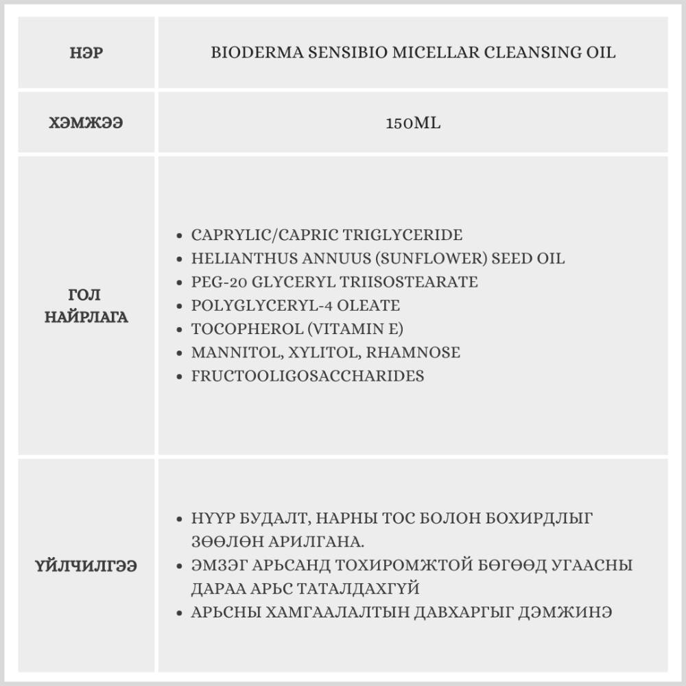 Мицелляр технологи болон тосон бүтцийг хослуулсан тул арьсны гүнд байгаа бохирдлыг маш сайн цэвэрлэнэ.Нүд болон уруулын будалтыг үрэх шаардлагагүйгээр хялбархан арилгана.Арьсанд байдаг байгалийн липидтэй ижил бүтэцтэй тул арьсыг тэжээлээр хангана.