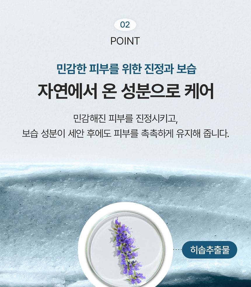 Энэхүү цэвэрлэгч нь 20 гаруй төрлийн байгалийн гаралтай орцуудыг агуулсан сунамтгай, наалдамхай бүтэцтэй. Blue Hyssop хувилбар нь ялангуяа арьсны гүн дэх бохирдлыг цэвэрлэх болон чийгшүүлэх тал дээр түлхүү анхаарсан бүтээгдэхүүн юм. Бэлгэнд 15 гр запас дагалдана.