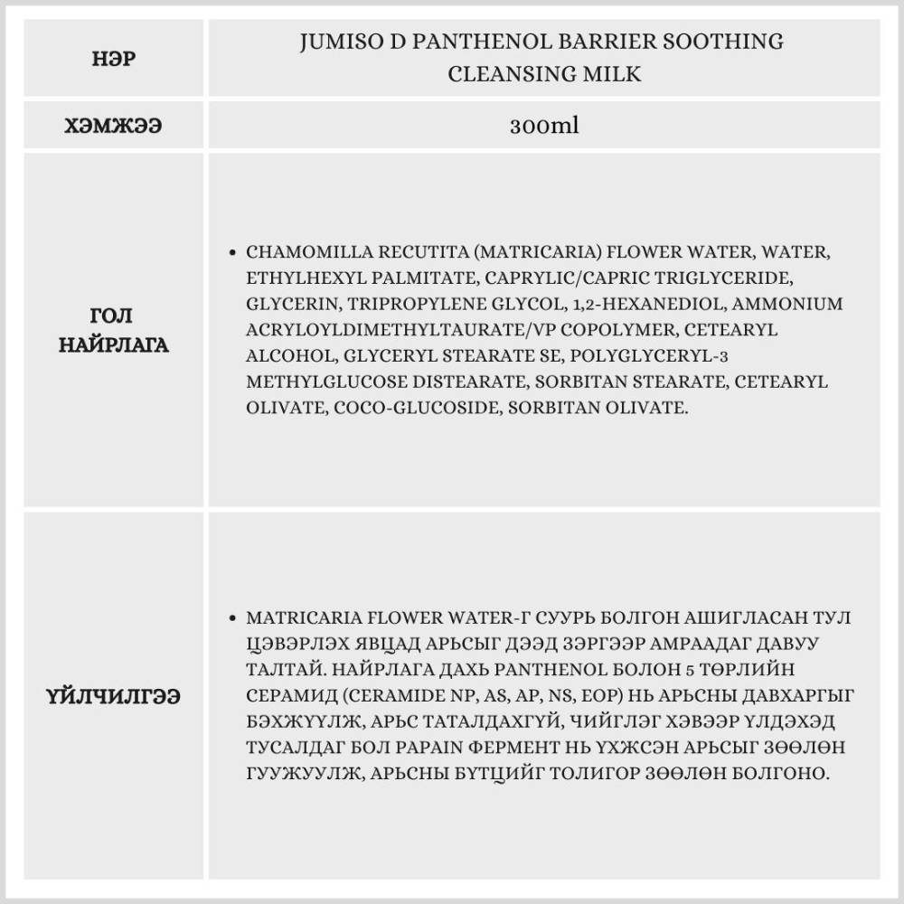 Энэхүү цэвэрлэгч сүүн шингэн нь арьсны чийгийг хадгалахын зэрэгцээ нүүр будаг болон бохирдлыг зөөлөн арилгана. Арьсны хамгаалалтын давхаргыг гэмтээхгүйгээр гүн цэвэрлэдэг тул эмзэг, хуурай арьсанд нэн тохиромжтой.