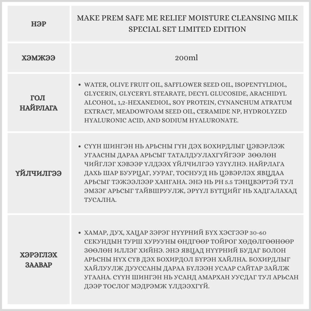 Энэхүү багц нь арьс арчилгааны хамгийн өндөр үнэлгээтэй сүүн цэвэрлэгч бөгөөд Limited Edition буюу онцгой багцаар худалдаанд гарсан.