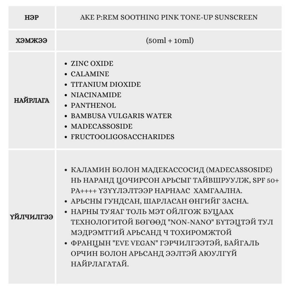 Энэхүү нарны тос нь будагч бодисгүй, арьс тайвшруулах Calamine-тай тул арьсны өнгийг зөөлөн сэргээнэ. Мэдрэмтгий арьсанд тохиромжтой физик шүүлтүүртэй бөгөөд арьсны гадаргуу дээр хамгаалалтын давхарга үүсгэж нарнаас хамгаална.