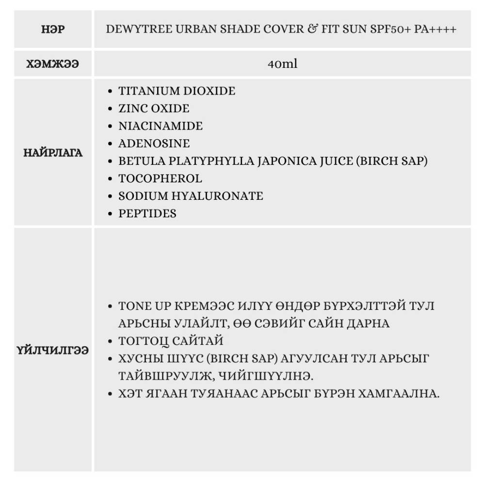 Энэхүү бүтээгдэхүүн нь суурь крем хэрэглэх шаардлагагүйгээр арьсны улайлт, толбо, нүх сүвний өө сэвийг дарахаас гадна нарны хэт ягаан туяанаас хамгаална.