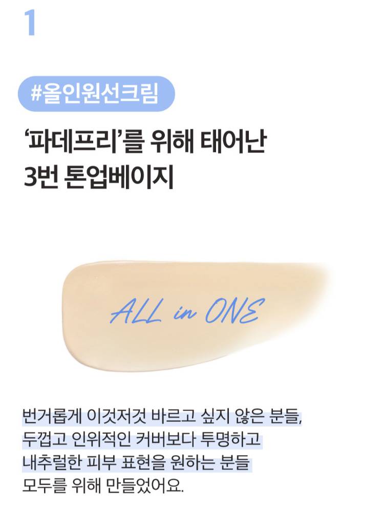 Энэ бүтээгдэхүүн нь суурь крем түрхэхгүй байсан ч арьсыг гэрэлтсэн, жигд өнгөтэй харагдуулах онцлогтой. Хүнд крем түрхэх шаардлагагүйгээр арьсны өнгөний жигд бус байдлыг дарж, жижиг нүх сүв, улайлт, сэвх зэрэг нь бүдгэрч, арьсыг илүү зөөлөн, толигор харагдуулдаг “priming” үйлчилгээтэй.