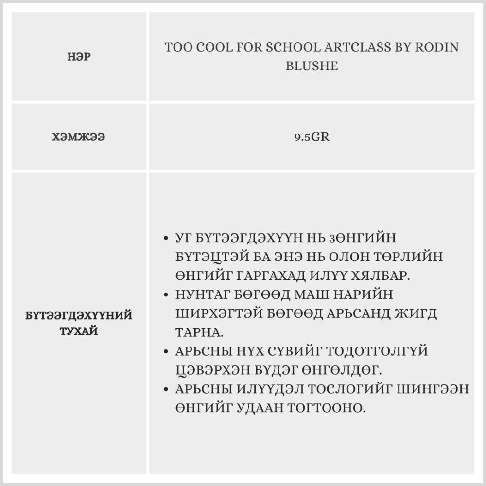Too cool for school Artclass By Rodin Blusher 9.5g 1 piece /Хацар өнгөлөгч/