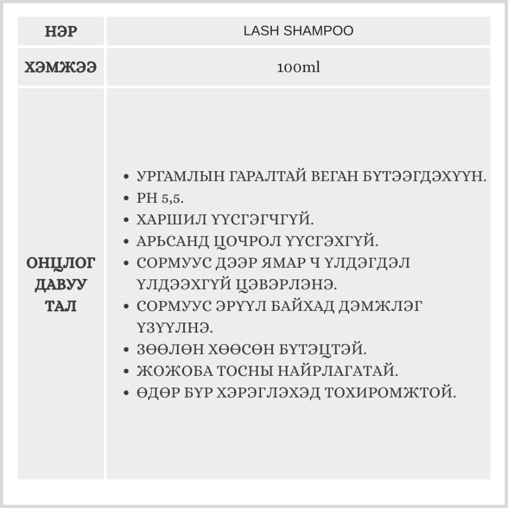 Lamon The Lash Monster нь сормуусанд зориулсан тусгай шампунь бөгөөд сормуус болон нүдний эргэн тойрны бохирдлыг гүн цэвэрлэж нүдний үрэвсэл, загатналтаас сэргийлнэ.