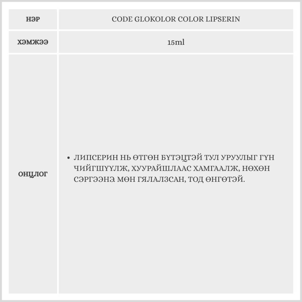 Өнгө оруулах болон гүн чийгшүүлэх үйлчилгээг хослуулсан уруулын бальзам бөгөөд лип бальзам, вазелинийг нэгтгэсэн бүтээгдэхүүн юм. Олон өнгөний сонголттой бөгөөд уруулыг хуурайшихаас хамгаалж, гялалзсан зөөлөн харагдуулна.