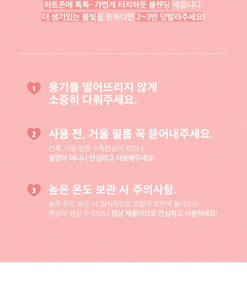 Зөөлөн тослог, кремэн бүтэц нь арьсанд жигд уусаж, хуурайшуулахгүй, бөөгнөрөхгүй толигор, гэрэлтсэн туяаг нэмэнэ. Гар, спонж аль алийг ашиглан амархан тарааж болдог тул өдөр тутмын натурал будалтанд тохиромжтой.