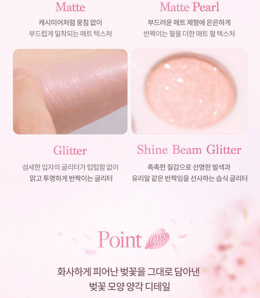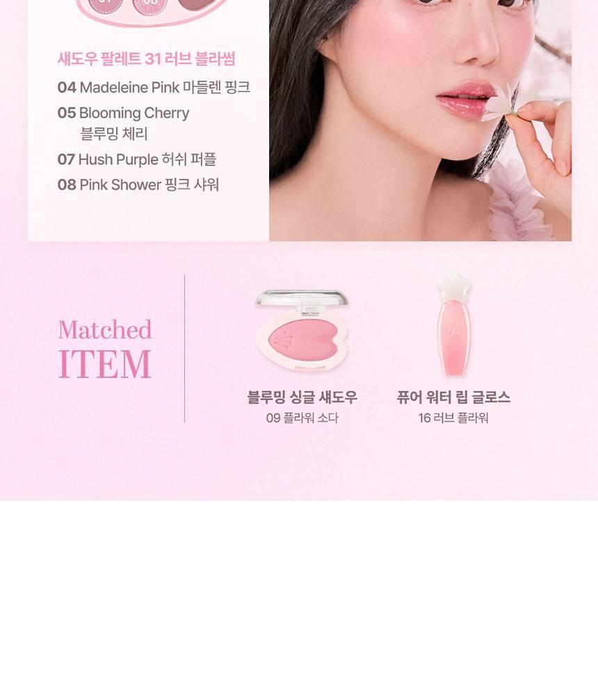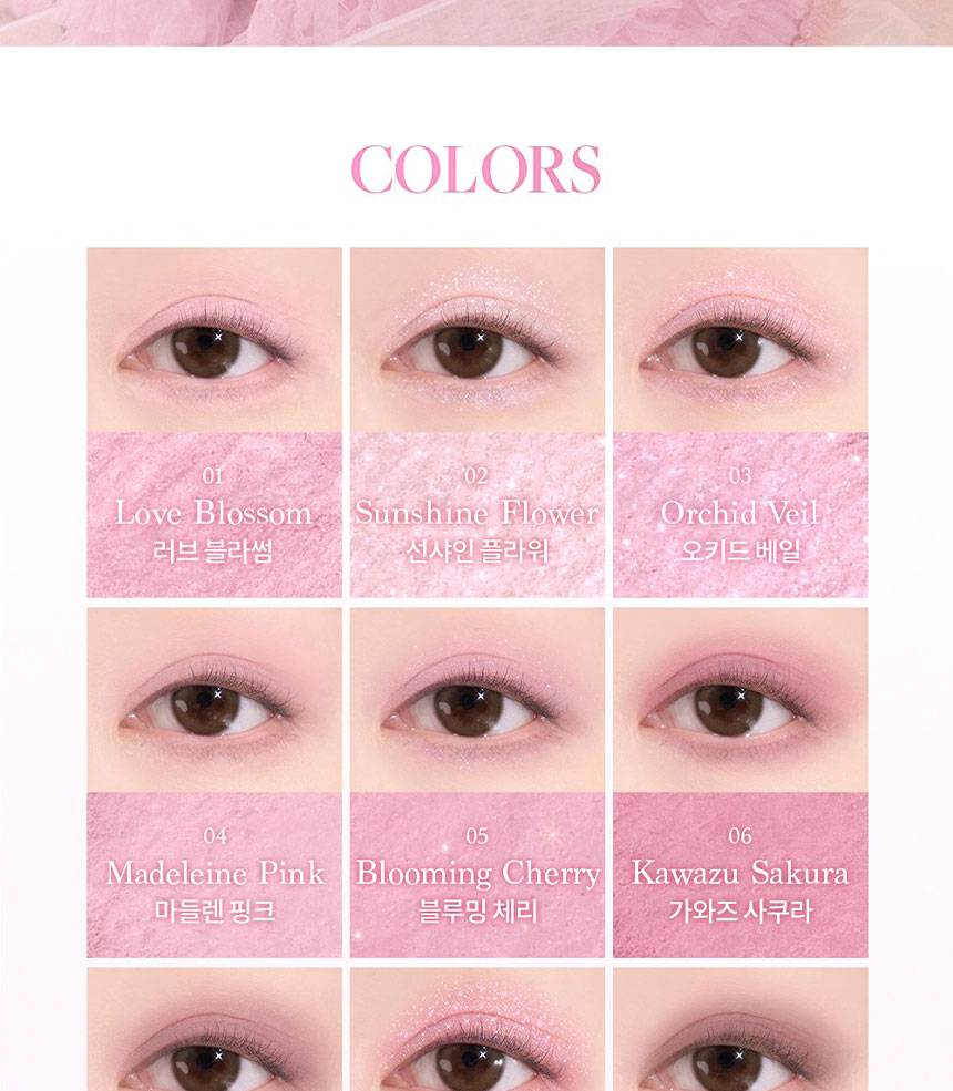 Зөөлөн, натурал, романтик өнгөнүүдийг багтаасан энэхүү нүдний тень нь Matte, Shimmer, Glitter бүтэцтэй олон төрлийн өнгөнөөс бүрдсэн. Өдөр тутмын цэвэрхэн будалтаас эхлээд илүү тод, онцгой төрлийн будалт хийхэд хүртэл тохиромжтой.