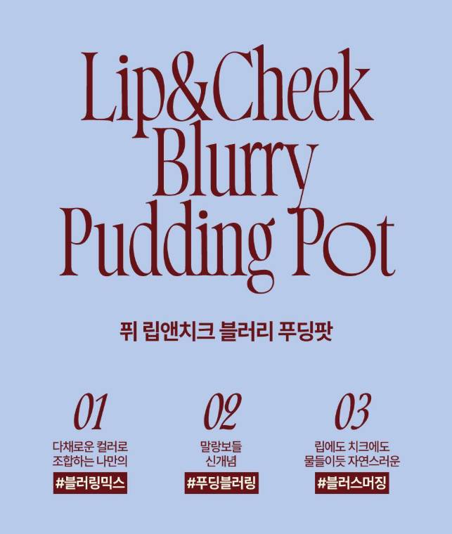 Fwee Lip & Cheek Blurry Pudding Pot нь уруул болон хацар дээр зэрэг хэрэглэх боломжтой зөөлөн “pudding” бүтэцтэй хацар, уруул өнгөлөгч юм. Арьсыг төрөлхийн мэт зөөлөн blur эффекттэй харагдуулна.
