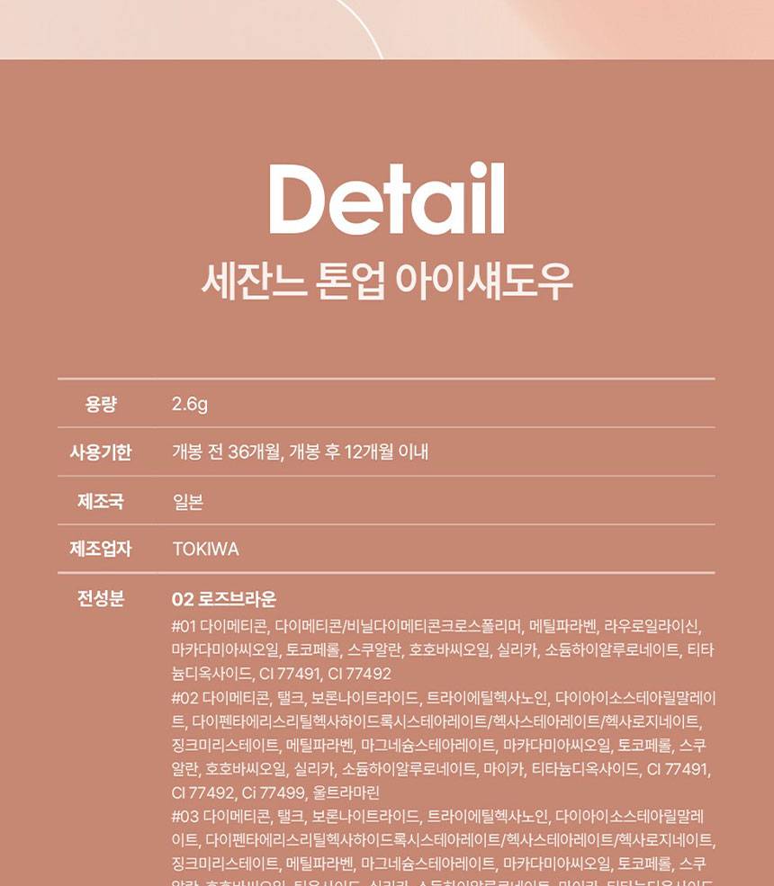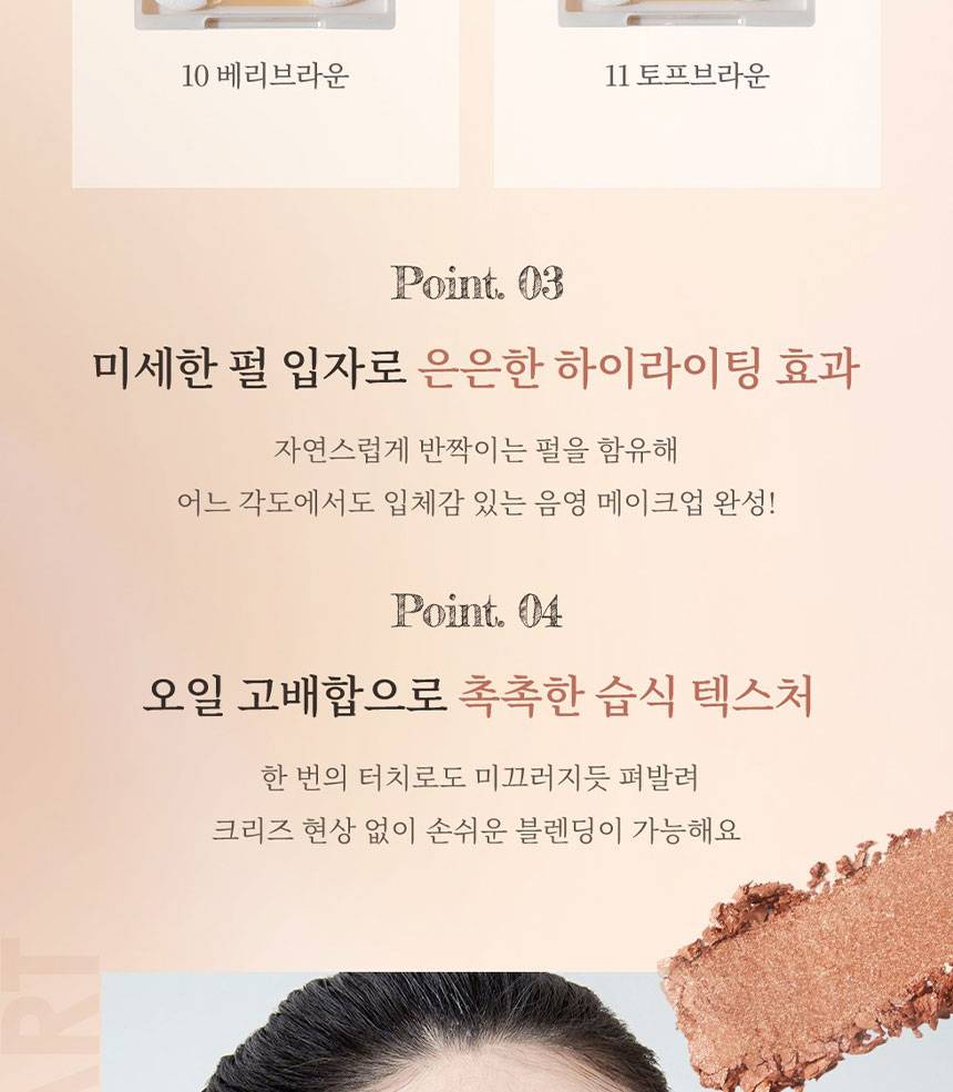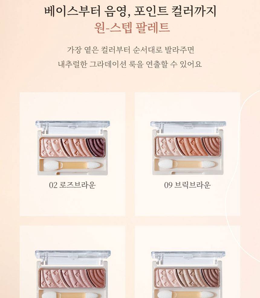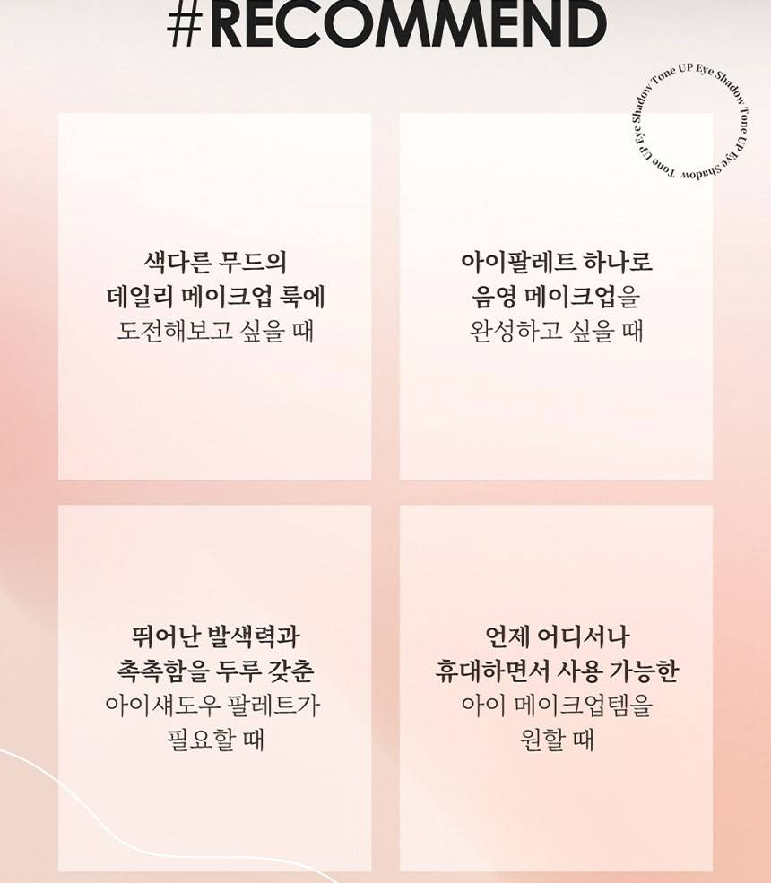 3 өөр өнгийг нэгтгэсэн, нүдний жижиг тень бөгөөд, нүдийг тодотгож, Tone Up өгнө. Энэхүү тениуд нь нүдэнд гүн сүүдэр үүсгэх үндсэн өнгө, Tone Up, болон нүдийг томруулж харагдуулах гэсэн гурвалсан хэсгээс бүрдсэн.