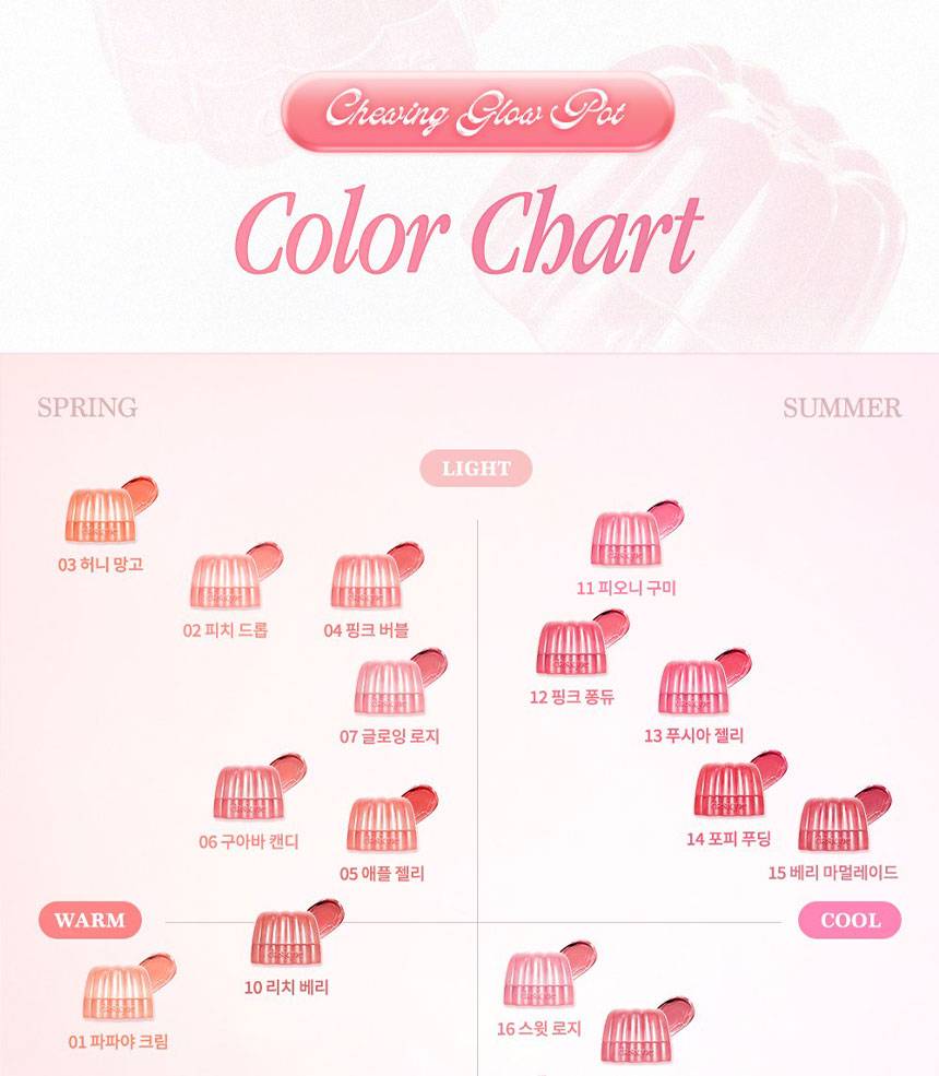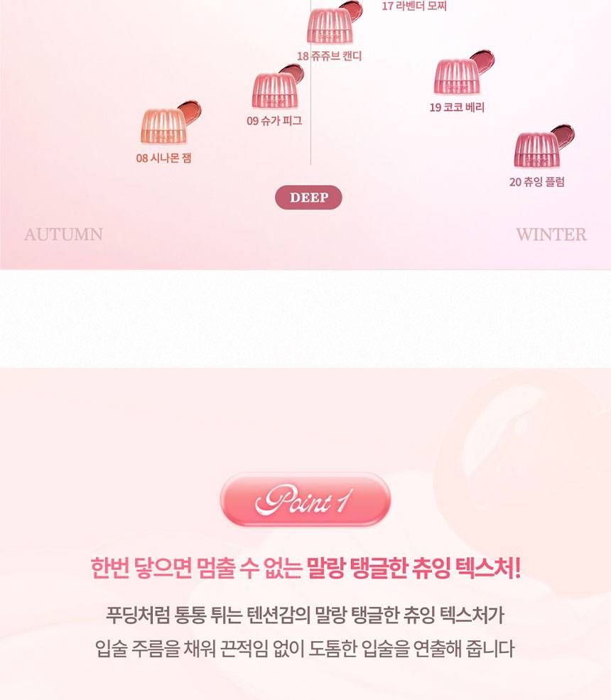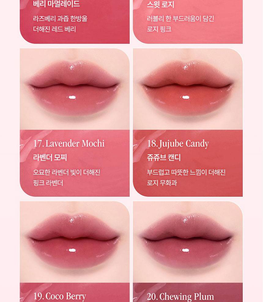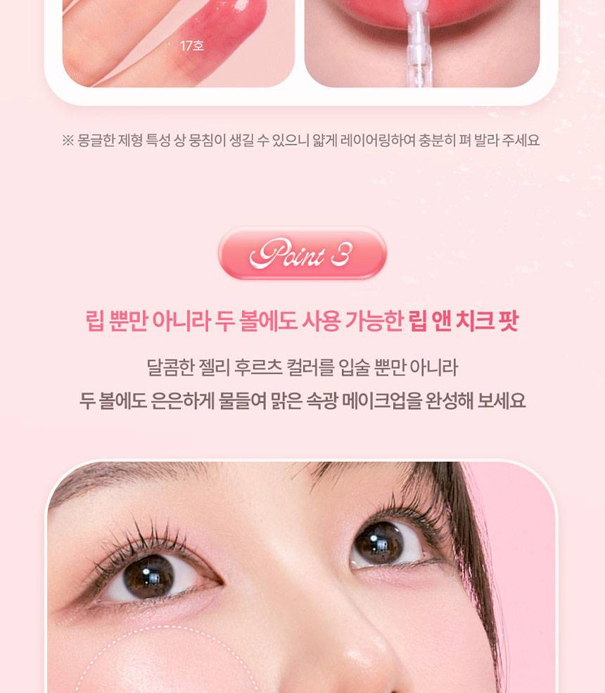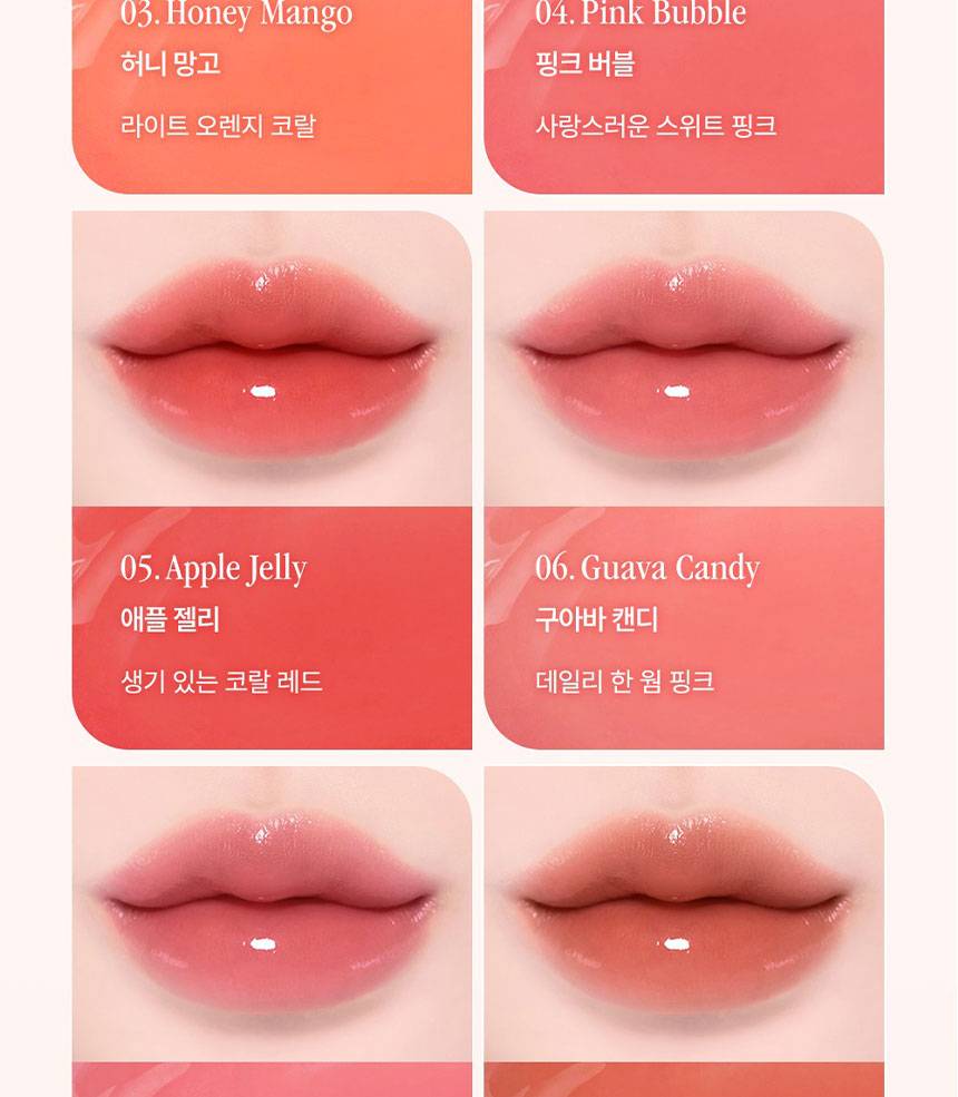 Уруулд тунгалаг, чийглэг желли мэт гялалзсан, тод өнгө нэмэх уруул өнгөлөгч. Наалдамхай биш бүтэцтэй учир зөөлөн түрхэгдэж, яг л чихэр, желли идсэн мэт тод харагдах ба хацар, уруулдаа хослуулан хэрэглэх боломжтой.