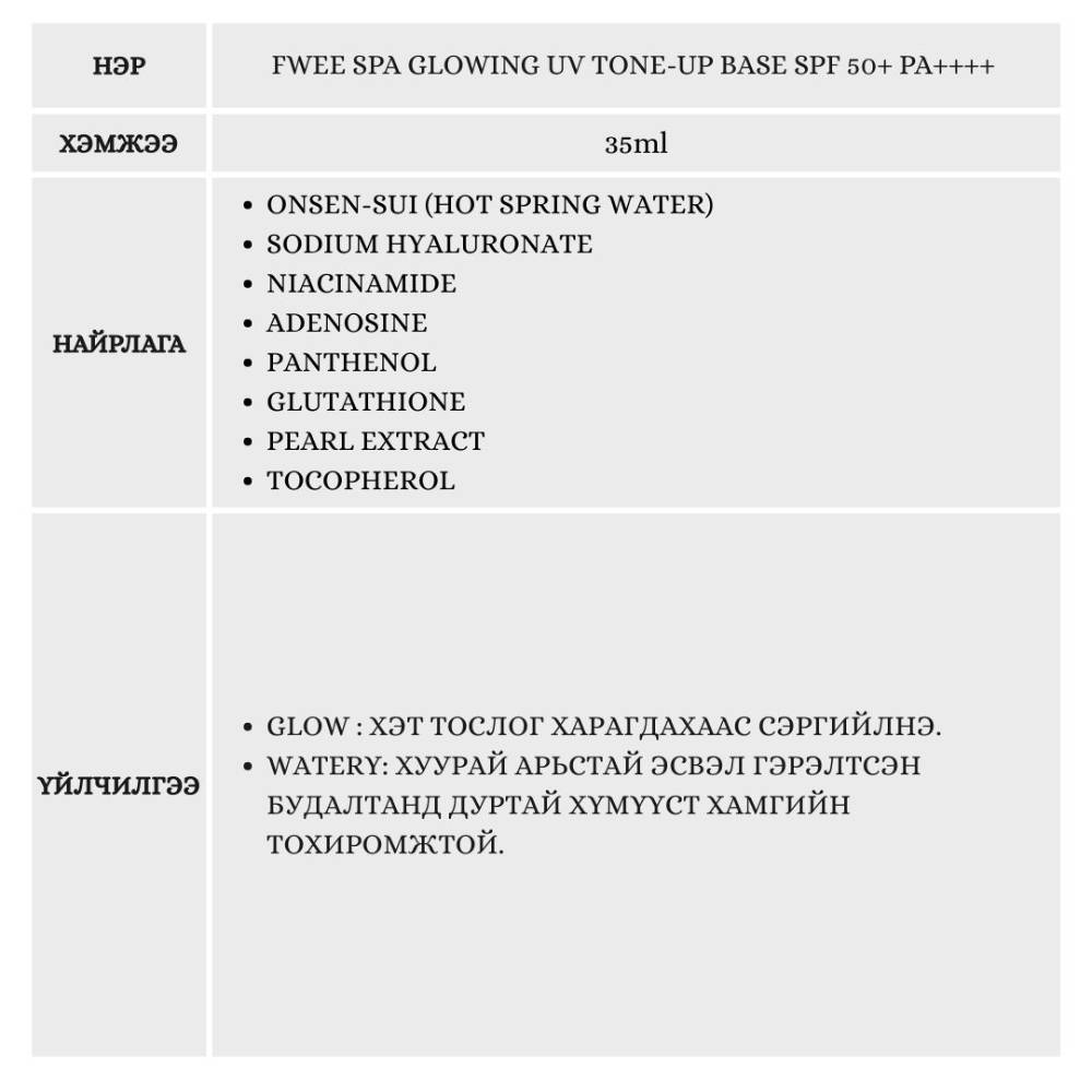 Арьсыг нарны хэт ягаан туяанаас хамгаалж арьсны өнгийг сэргээнэ. Хөнгөн бүтэцтэй тул суурь кремний өмнө эсвэл оронд нь хэрэглэхэд тохиромжтой.