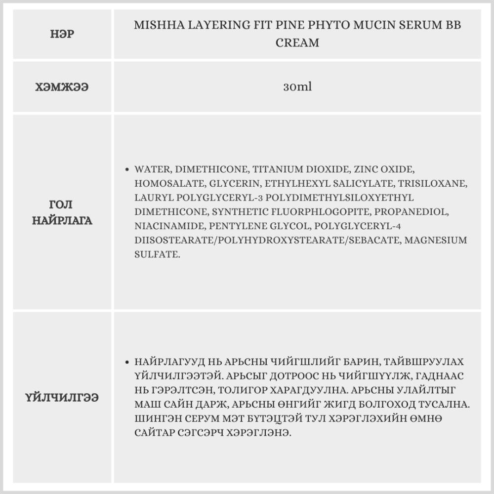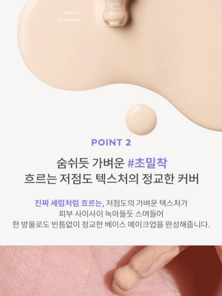 Энэхүү бүтээгдэхүүн нь энгийн BB кремээс ялгаатай бөгөөд найрлагынх нь 60 гаруй хувь нь арьс арчилгааны орцуудаас бүрдсэн. Нимгэн бүтэцтэй тул олон давхарлаж түрхсэн ч зузаарч харагдахгүй.