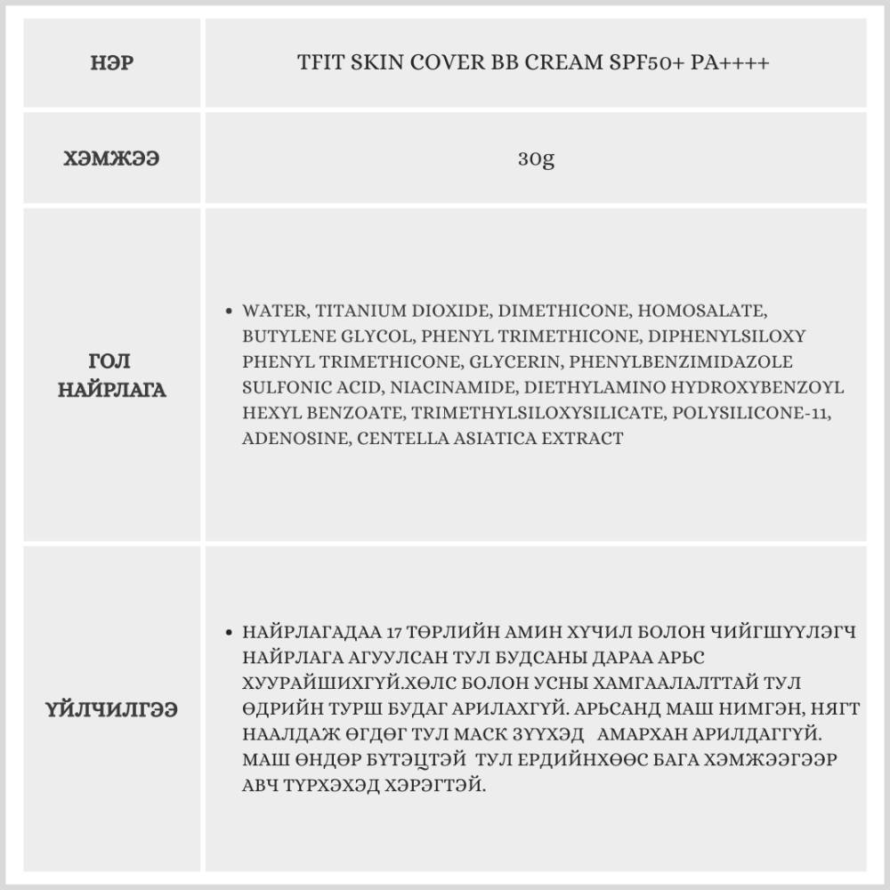 Энэхүү бүтээгдэхүүн нь арьсны нөсөө толбо, улайлт, батганы сорви болон нүхжилтийг үр дүнтэй дарна. Өө дарагчийг тусад нь хэрэглэх шаардлагагүй бөгөөд нарнаас хамгаалах чадвар өндөр.