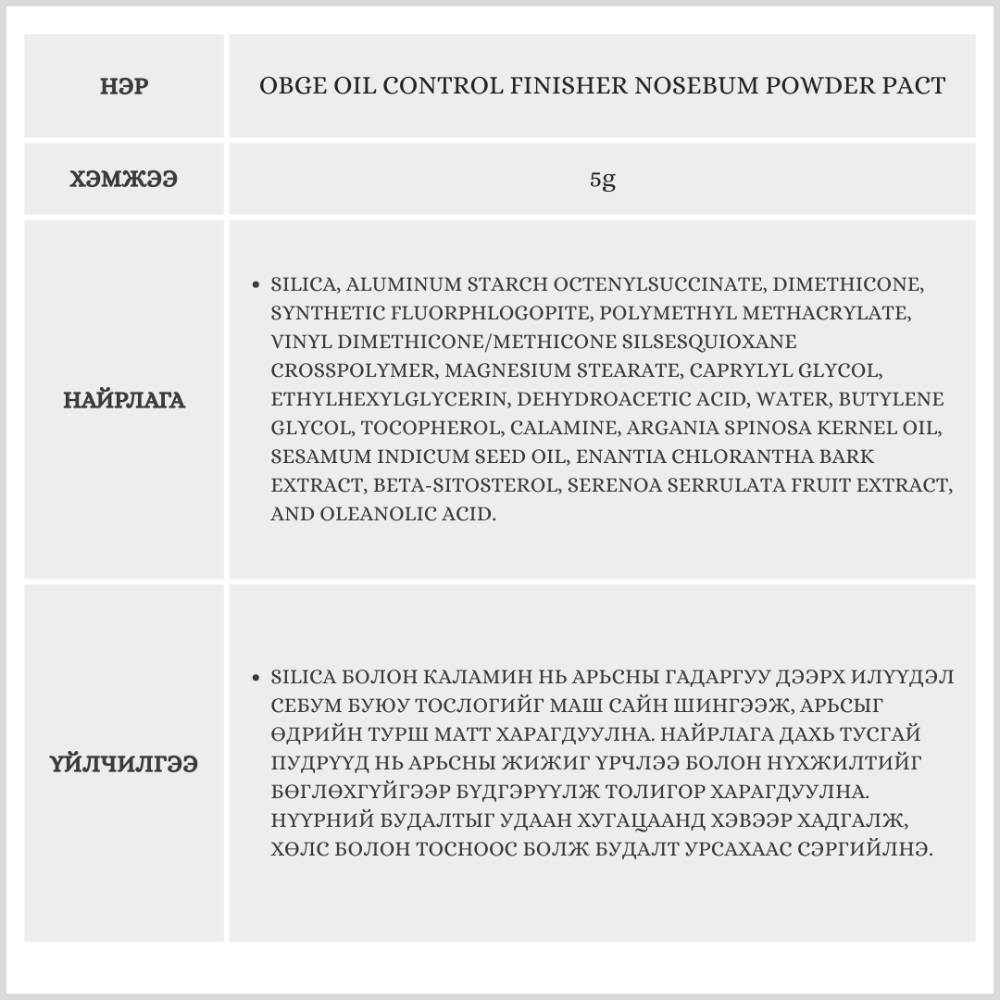 Энэхүү носебум шахмал пудр нь арьсны илүүдэл тослог болон нүүрний гялайлтыг дарж, өдрийн турш арьсыг мат бөгөөд цэвэрхэн харагдуулах үйлчилгээтэйгээс гадна маш нарийн ширхэгтэй пудрын хэсгүүд нь нүхжилтийг бөглөхгүйгээр арьсны гадаргууг толигор болгож засаж өгдөг давуу талтай.