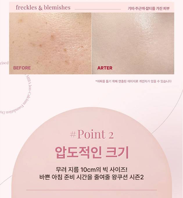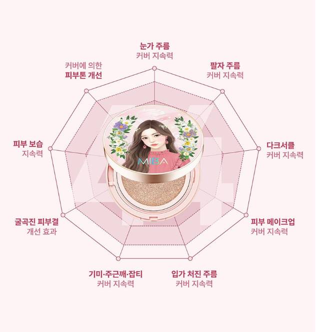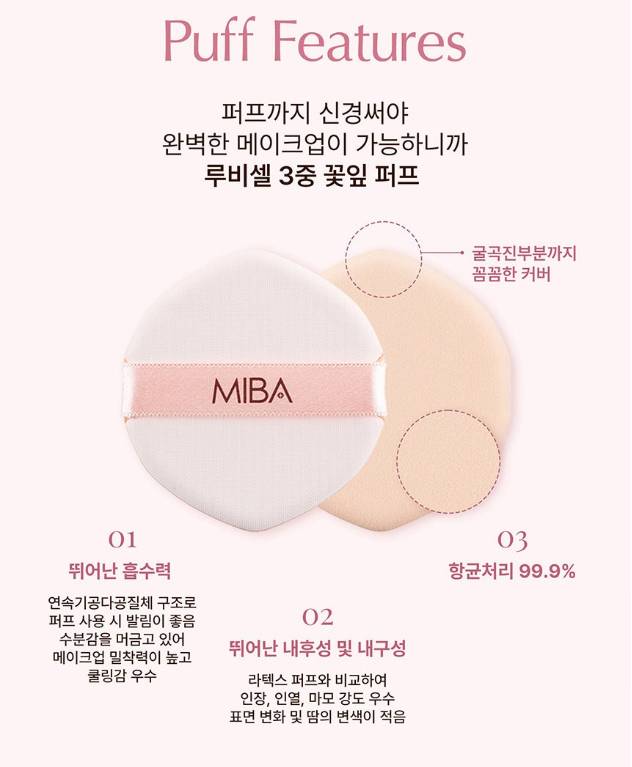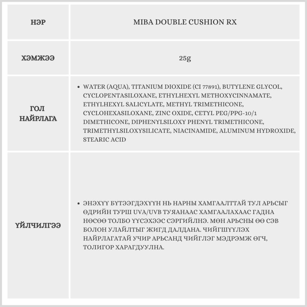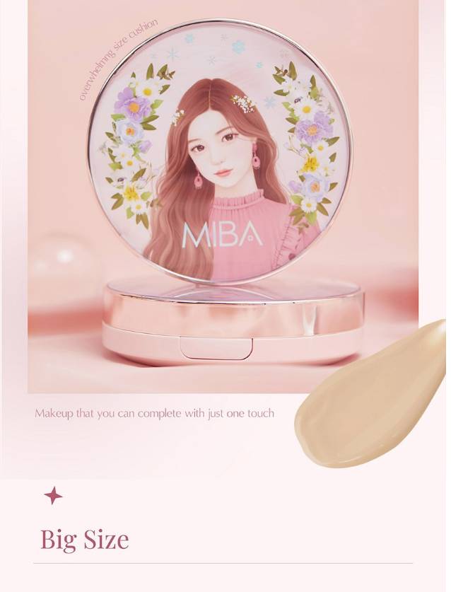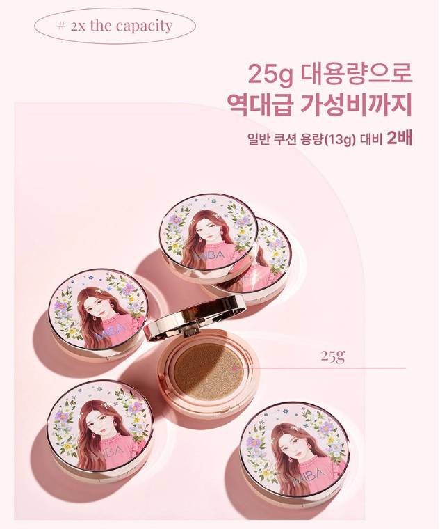 Miba брэндийн энэ cushion нь том савлагаатай бөгөөд өө сэв, нөсөө толбо болон улайлтыг жигд дарж, арьсыг цэвэрхэн толигор харагдуулна. Чийгшүүлэх найрлагатай тул арьсанд тухтай чийглэг мэдрэмж өгнө.