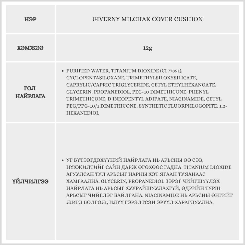 Энэхүү cushion нь арьсны өө сэвийг жигд далдалж өгөх ба хөнгөн бүтэцтэй тул арьсан дээр бөөгнөрөхгүй. Тогтоц сайтай тул өдрийн турш арьсыг хамгаална. 12гр савлагаатай запас дагалдана.