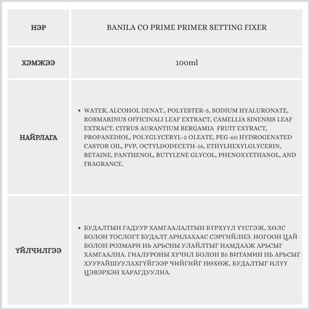 Энэхүү бүтээгдэхүүн нь Солонгосын Olive Young дэлгүүрт борлуулалтаараа тэргүүлдэг бүтээгдэхүүн юм. Будалтыг хөлс, тослог, чийгнээс хамгаалж, өдрийн турш хөнгөн мэдрэмж төрүүлнэ.