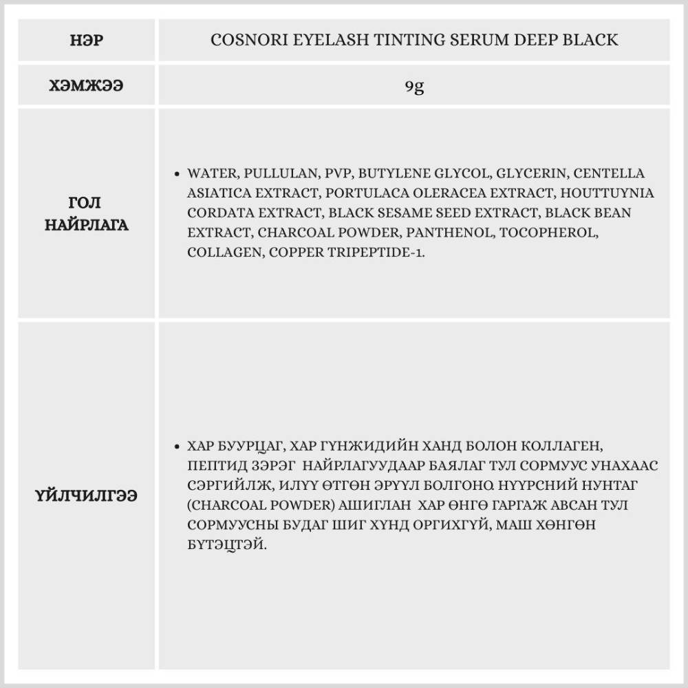 Сормуусны серум болон будгийг нэг дор багтаасан бүтээгдэхүүн юм. Сормуусыг эрүүлжүүлэх тэжээл агуулснаас гадна Deep Black өнгөтэй тул сормуусны будагны оронд хэрэглэх боломжтой.