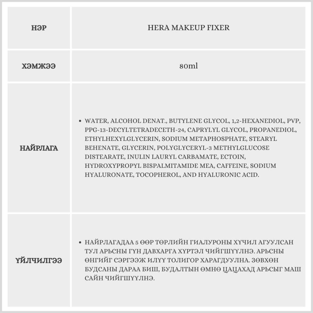 Hera Makeup Fixer, 80ml /Будаг түгжигч/