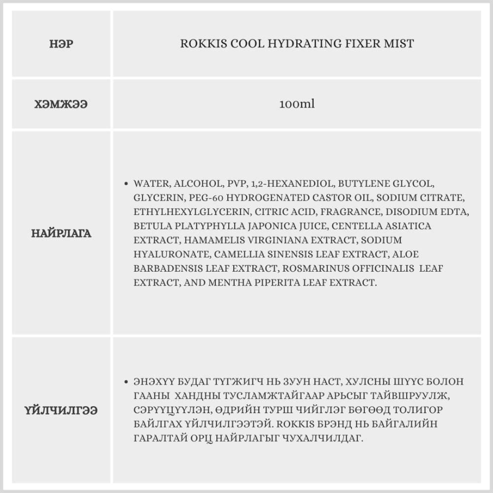 Энэхүү бүтээгдэхүүн нь будаг түгжигч болон чийгшүүлэгч мистийн үйлдлийг зэрэг гүйцэтгэнэ. Будалтыг түгжхийн зэрэгцээ арьны гүнд чийгшил өгөх зориулалттай.