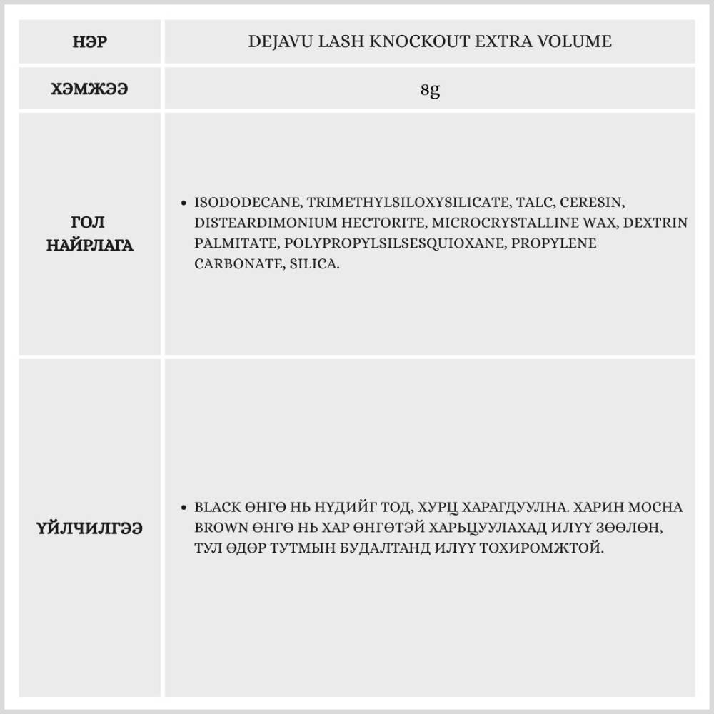 Энэхүү бүтээгдэхүүн нь Film Type найрлагатай тул сормуусыг бөөгнөрүүлэхгүй, хооронд нь наалдуулахгүй. Удаан тогтоцтой ч бүлээн усаар амархан арилдагаараа давуу талтай бүтээгдэхүүн бөгөөд сормуусыг гэмтээхгүй, тэжээлээр хангах үйлчилгээтэй сормуусны будаг юм.