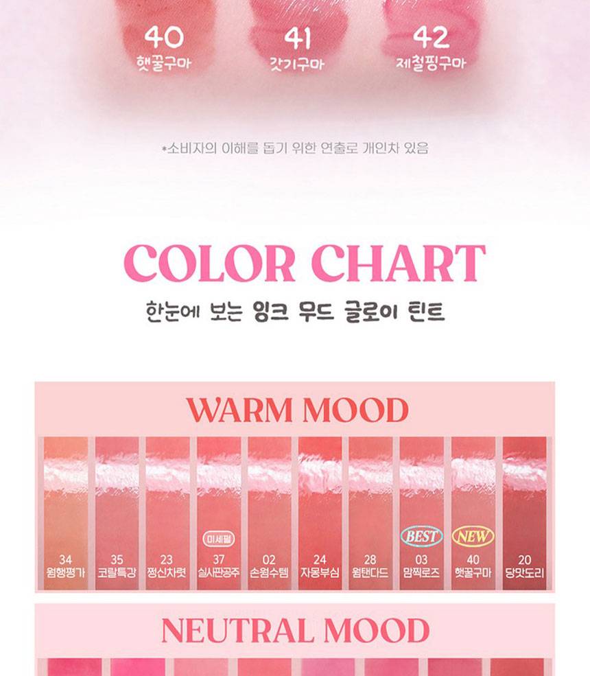 Ink Mood Glowy Tint нь уруулыг гялалзсан бөгөөд чийглэг харагдуулах тинт төрлийн уруулын будаг юм. Хөнгөн, наалдамхай биш бүтэцтэй тул уруулыг хуурайшуулахгүй.