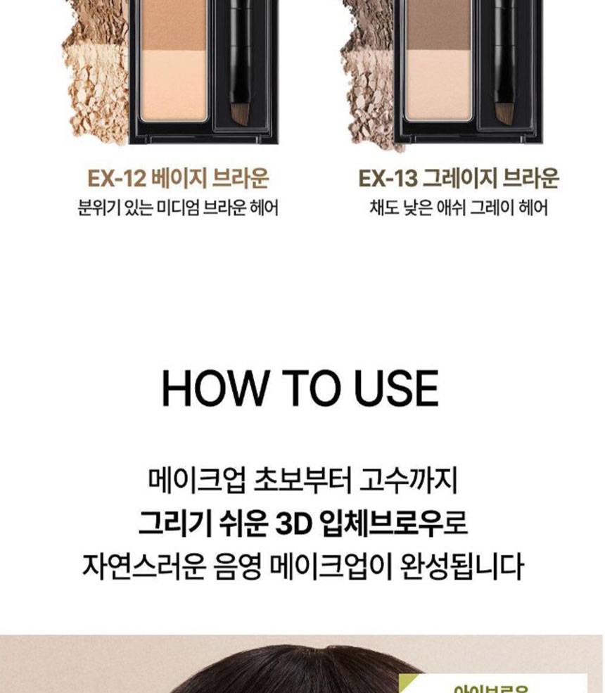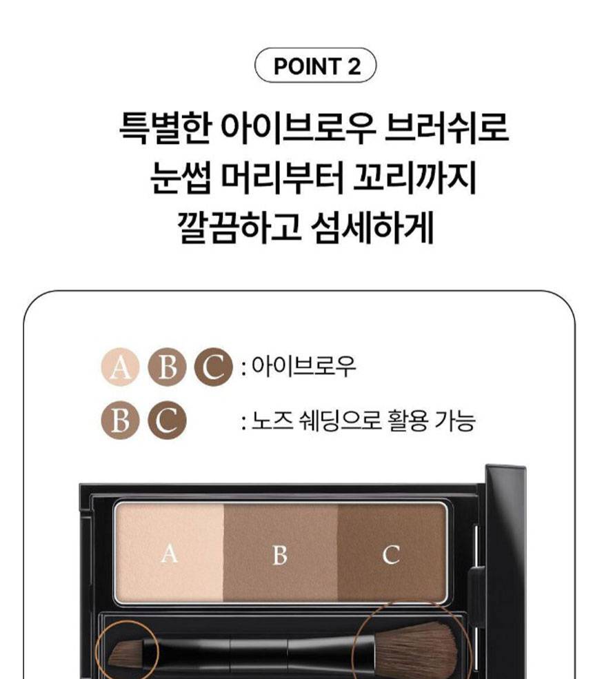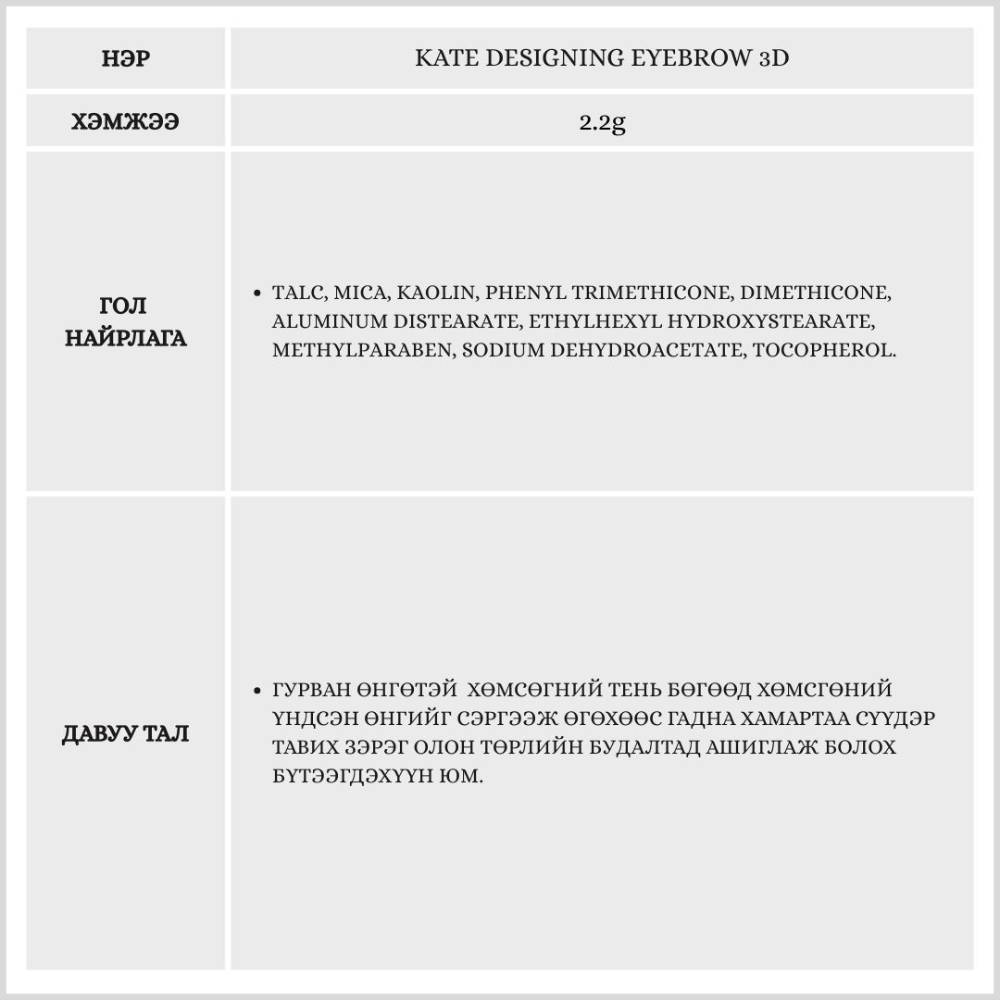 Designing Eyebrow 3D нь гурван өөр өнгийг багтаасан хөмсөгөө будах болон хамрын сүүдэр тавихдаа хэрэглэх боломжтой тень юм.