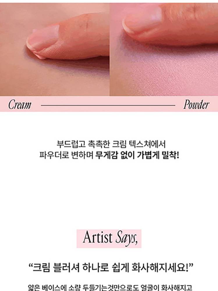 Түрхсэний дараа хөнгөн пудр шиг болдог тул наалдамхай мэдрэмж үүсгэдэггүй. Крем пудрийн давхар үйлчилгээтэй тул арьсанд тэжээл өгч, өнгө удаан хадгална.
