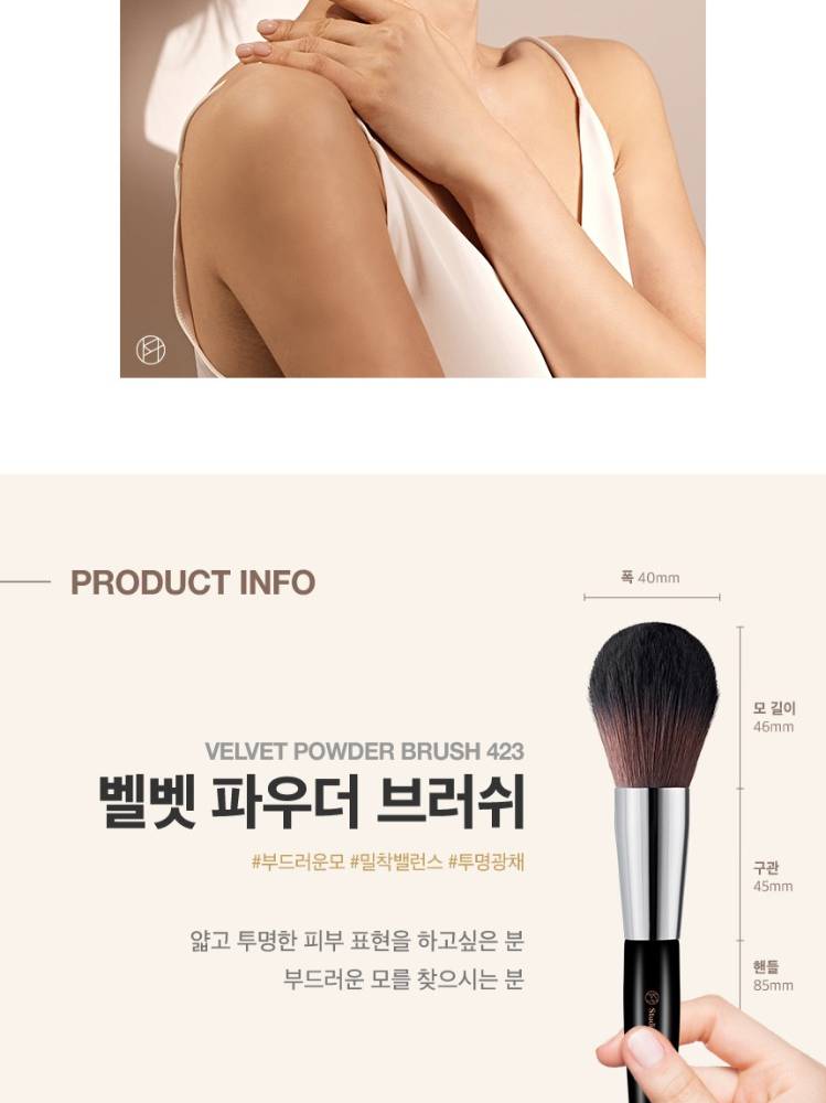 Энэхүү пудрын багс нь маш зөөлөн, нягт үстэй тул пудрыг арьсан дээр жигд, нимгэн тарааж өгнө. Velvet төрлийн үс нь арьсыг цочроохгүй бөгөөд нүүр будалтыг цэвэрхэн цэгцтэй харагдуулна. Бат бөх хийцтэй.
