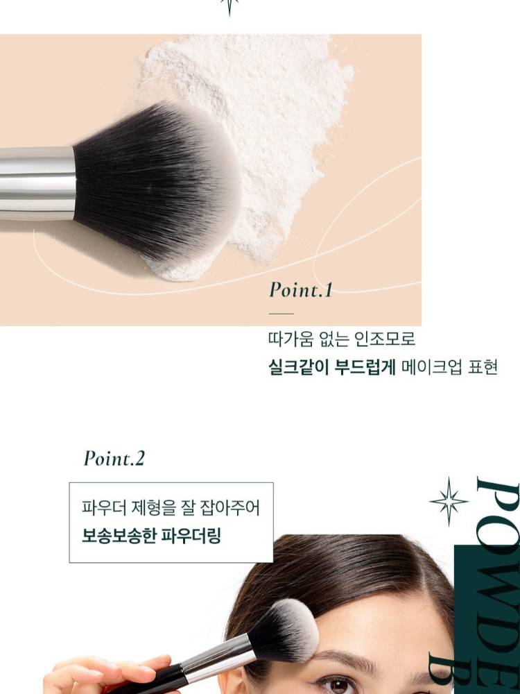 Энэхүү пудрын багс нь маш зөөлөн, нягт үстэй тул пудрыг арьсан дээр жигд, нимгэн тарааж өгнө. Velvet төрлийн үс нь арьсыг цочроохгүй бөгөөд нүүр будалтыг цэвэрхэн цэгцтэй харагдуулна. Бат бөх хийцтэй.
