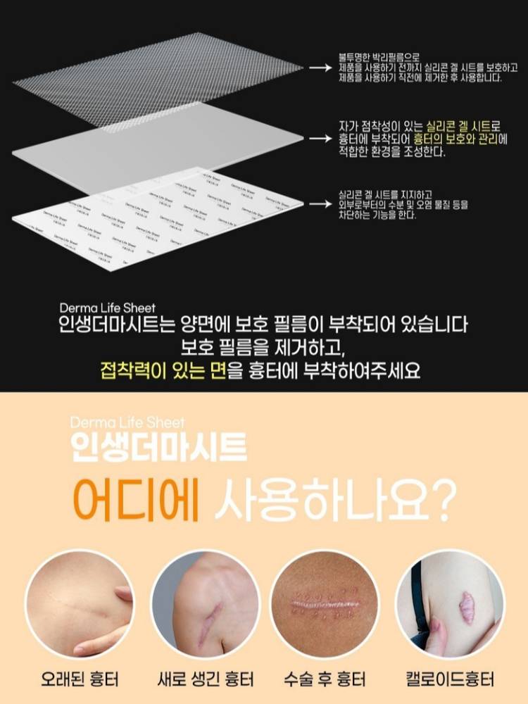 Derma Life sheet сорвины наалт нь келоид болон гипертропик сорвины эдгэрэлтийг түргэсгэж, бүдэгрүүлэх үйлчилгээтэй эмчилгээний бүтээгдэхүүн юм. Арьсны нөхөн төлжилтийг сайжруулж, чийгийг хадгалснаар сорвийг зөөлрүүлэн зузаан, товойсон, таталдсан, харласан байдлыг арилгаж арьсыг жигдрүүлнэ.