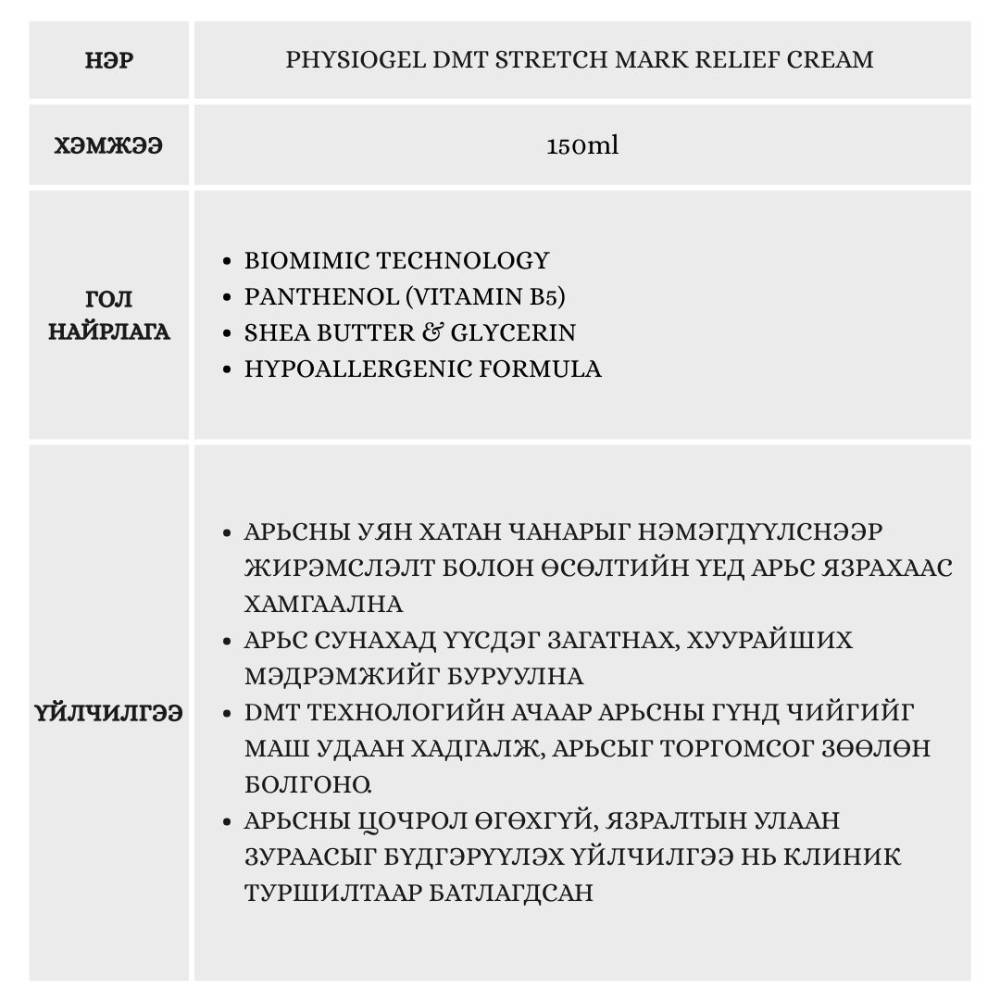 Physiogel-ийн алдарт Daily Moisture Therapy технологийг арьсны суналт, язралтын арчилгаанд зориулан тусгайлан хөгжүүлсэн бүтээгдэхүүн юм. Арьсны уян хатан чанарыг сайжруулж, суналтаас үүдэлтэй загатнах мэдрэмжийг намдаах замаар язралт үүсэхээс сэргийлэх болон үүссэн язралтыг бүдгэрүүлнэ.