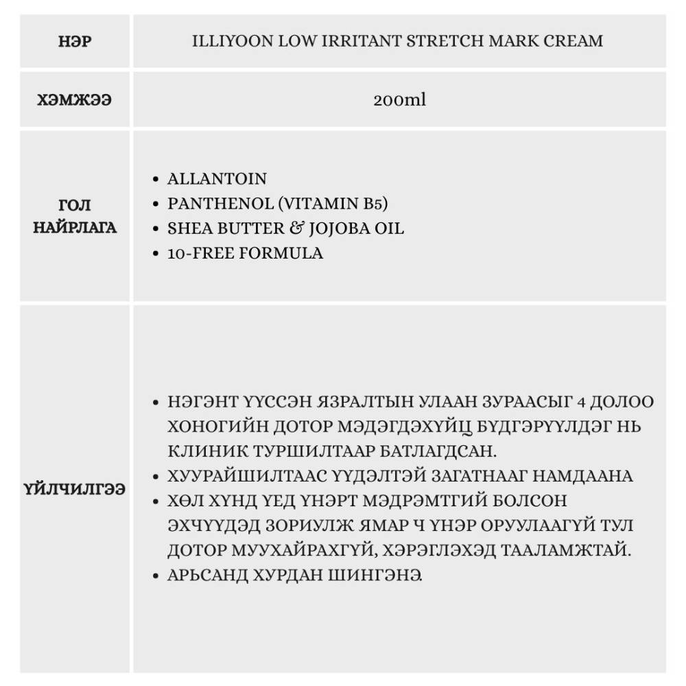 Энэхүү крем нь жирэмсэн үед болон жин нэмэх үед арьс сунаснаас үүдэн загатнах, улайх, язрах асуудлыг тань шийднэ. Маш зөөлөн найрлагатай тул үнэрт мэдрэмтгий болон эмзэг арьстай жирэмсэн эхчүүдэд хамгийн тохиромжтой.