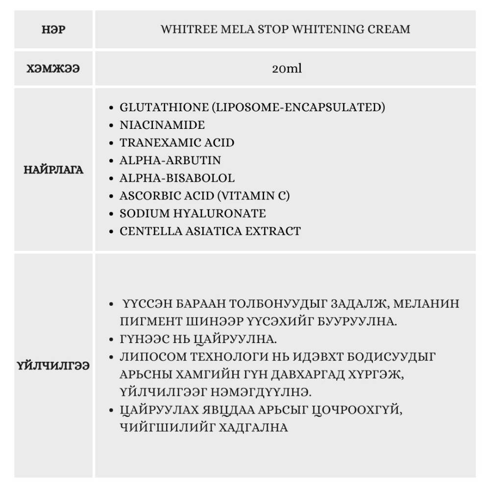 Арьсны гүнд нэвтрэх чадвар өндөртэй Liposome технологиор баяжуулсан глутатионыг агуулсан. Энэхүү тос нь сэвх, нөсөө толбо болон насжилтаас үүдсэн нөсөө толбыг арилгана.