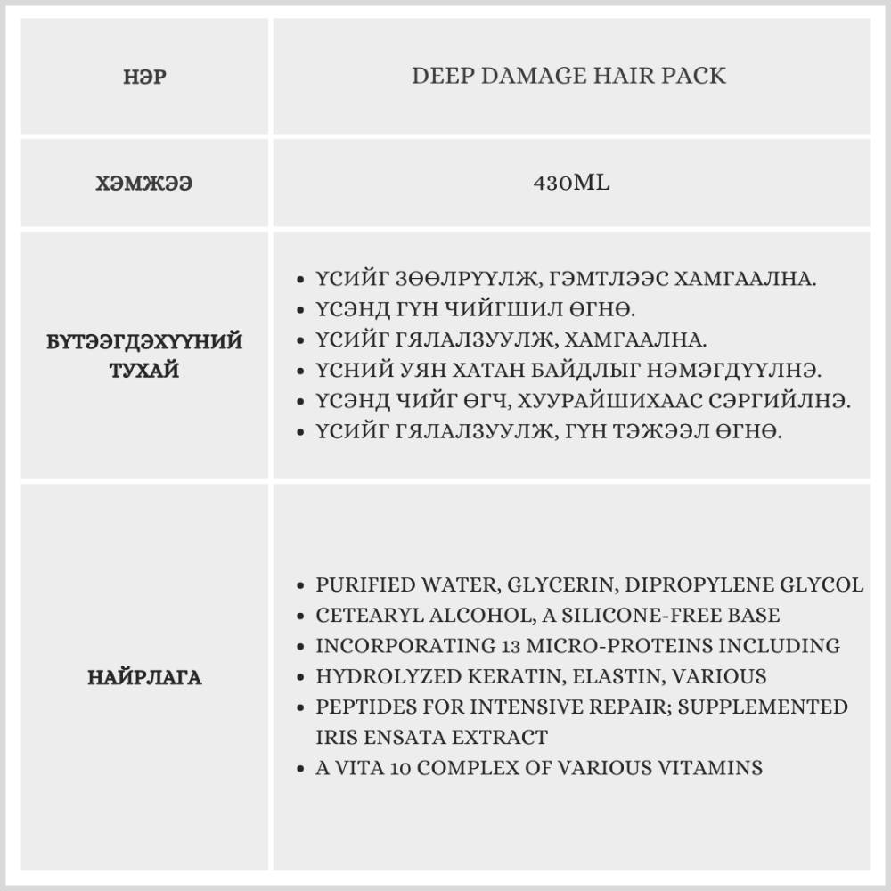 Deep Damage Hair Pack 430ml /Үсний маск/