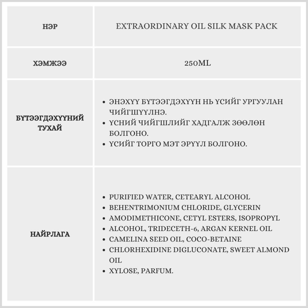 Extraordinary Oil Silk Mask Pack 250ml /Үсний маск/
