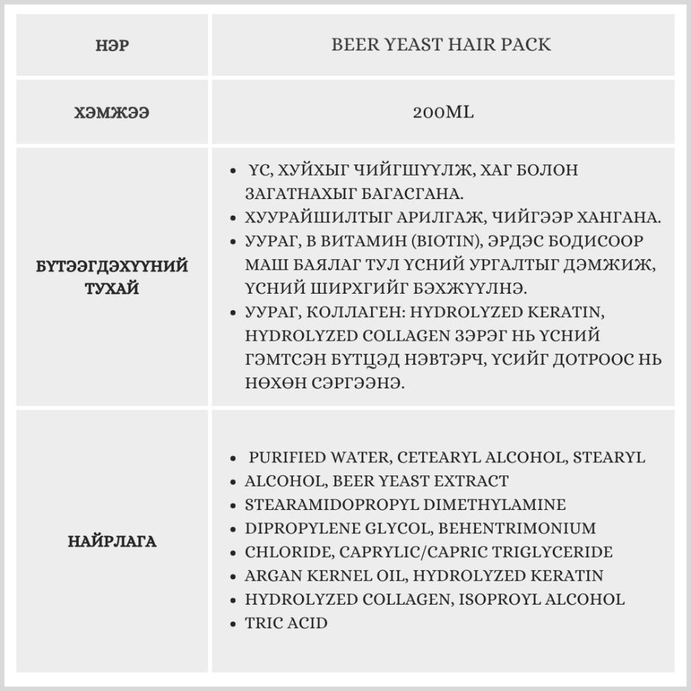 Beer Yeast Hair Pack 200gr /Үсний маск/