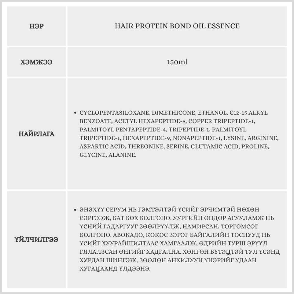 Үсний бүтцэд хамгийн чухал 37 төрлийн уураг болон амин хүчил агуулсан тул салаалсан, хугарсан үсийг эрүүлжүүлнэ.