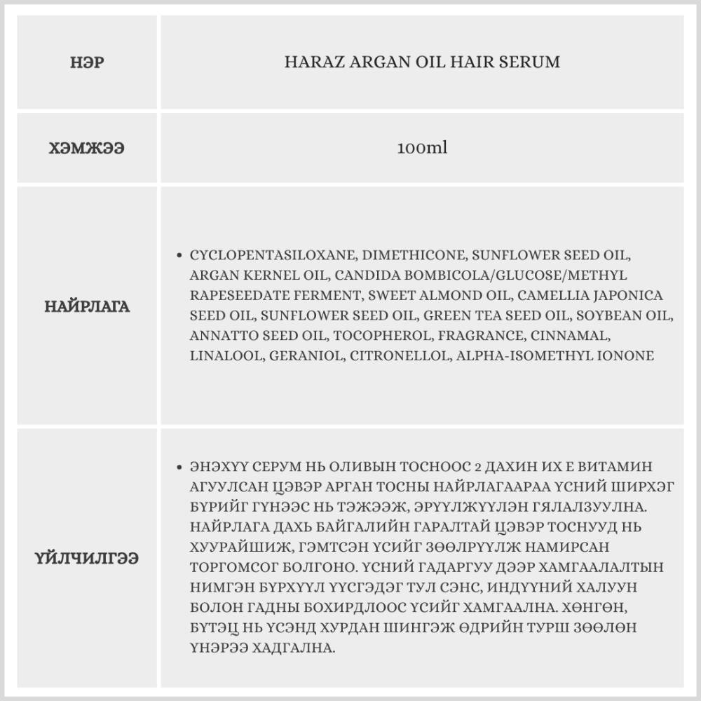 Haraz Argan Oil Hair Serum, 100ml /Үсний серум/