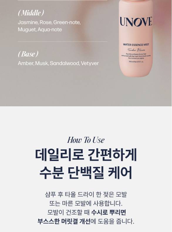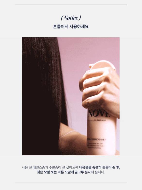 Энэхүү бүтээгдэхүүн нь үсэнд шууд шүршиж хэрэглэх ба усан бүтэцтэй эссенц төрлийн үсний мист юм. Үсийг хурдан хугацаанд чийгшүүлж, хуурайшилт болон арзгар байдлыг багасган, зөөлөн, намирсан болгоно. Бэлгэнд 30мл савлагаатай адил бүтээгдэхүүн дагалдана.