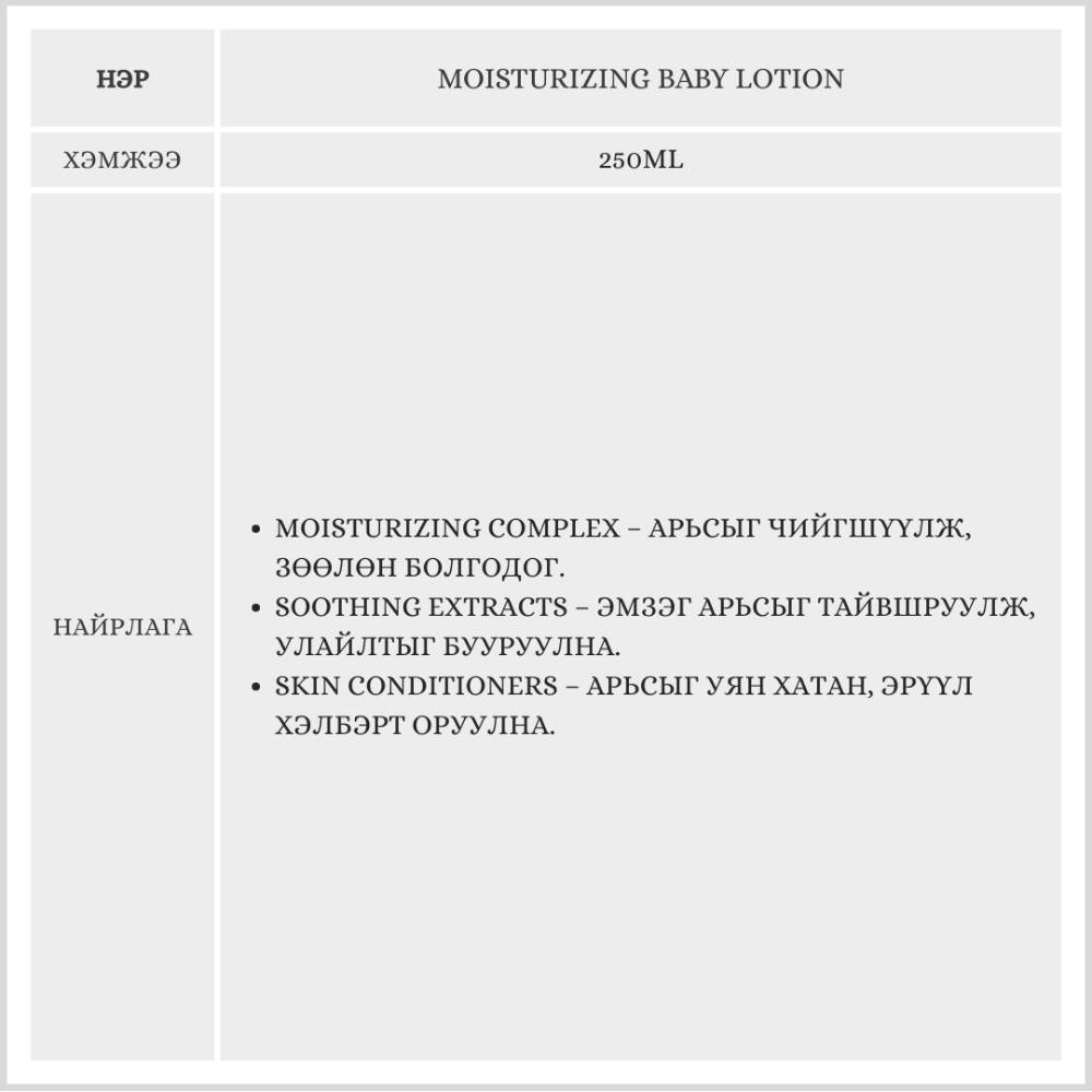 Энэхүү бүтээгдэхүүн нь нярай болон хүүхдийн эмзэг, хуурай арьсанд зориулагдсан бөгөөд арьсыг гүн чийгшүүлж, зөөлөн бөгөөд уян хатан болгоно. Өдөр тутмын арьс арчилгаанд хэрэглэхэд нэн тохиромжтой, маш зөөлөн бүтэцтэй.