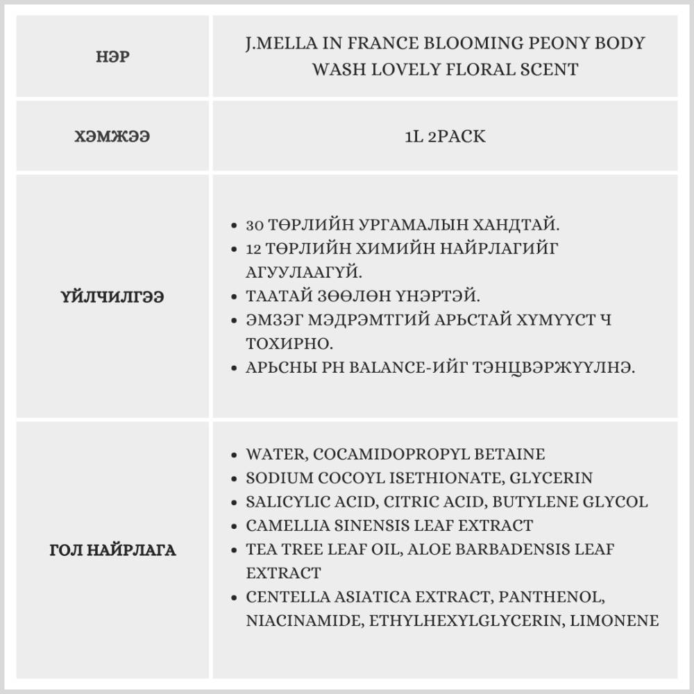 30 төрлийн ургамлын хандтай энэхүү бүтээгдэхүүн нь арьсыг зөөлөн тайвшруулж, булбарай гялалзсан болгоно. 12 төрлийн хорт химийн бодис агуулаагүй тул эмзэг арьсанд ч аюулгүй, цочрол өгөхгүй.