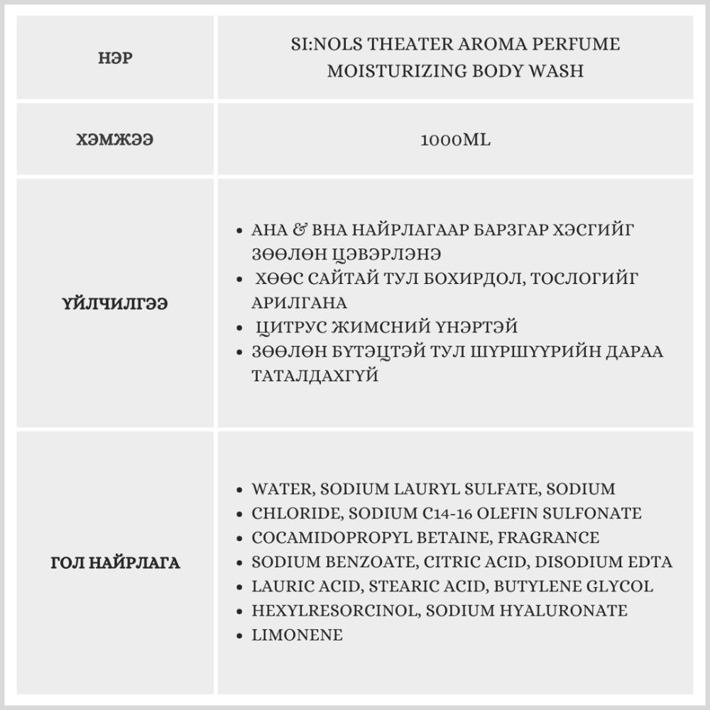 AHA болон BHA найрлага нь биеийн үхэжсэн эсийг зөөлөн гуужуулна. Цитрусийн шинэхэн үнэр нь шүршүүрт орсон мэт сэргэг мэдрэмжийг удаан хадгалах бөгөөд хөөсөрхөг, зөөлөн бүтэц нь арьсыг хуурайшуулахгүй.