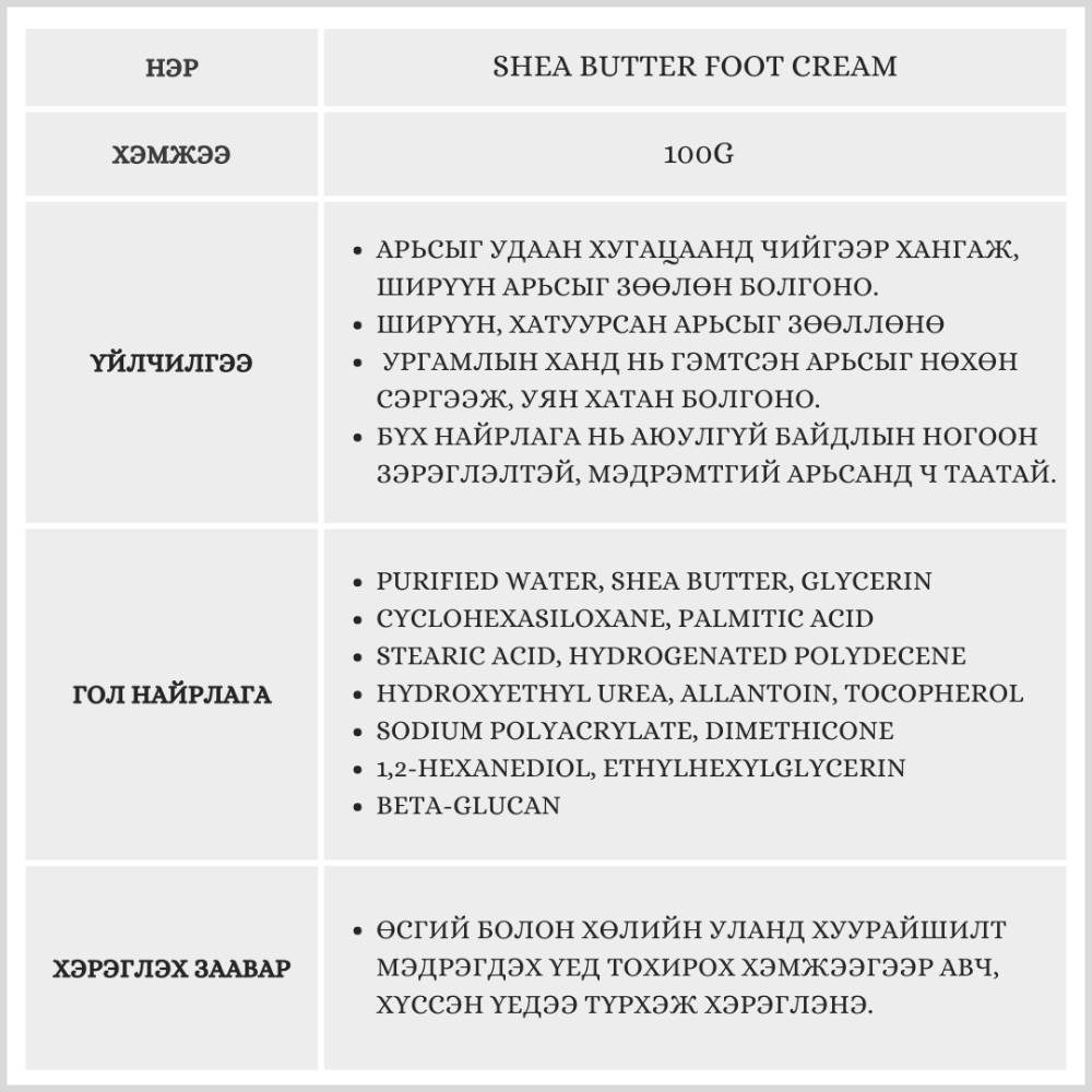 Хуурайшиж хагарсан өсгийг богино хугацаанд зөөлрүүлж, толигор болгоно. Байгалийн гаралтай найрлага нь арьсыг гүн чийгшүүлж, хамгаалалтын давхарга үүсгэн дахин хуурайшихаас сэргийлнэ.