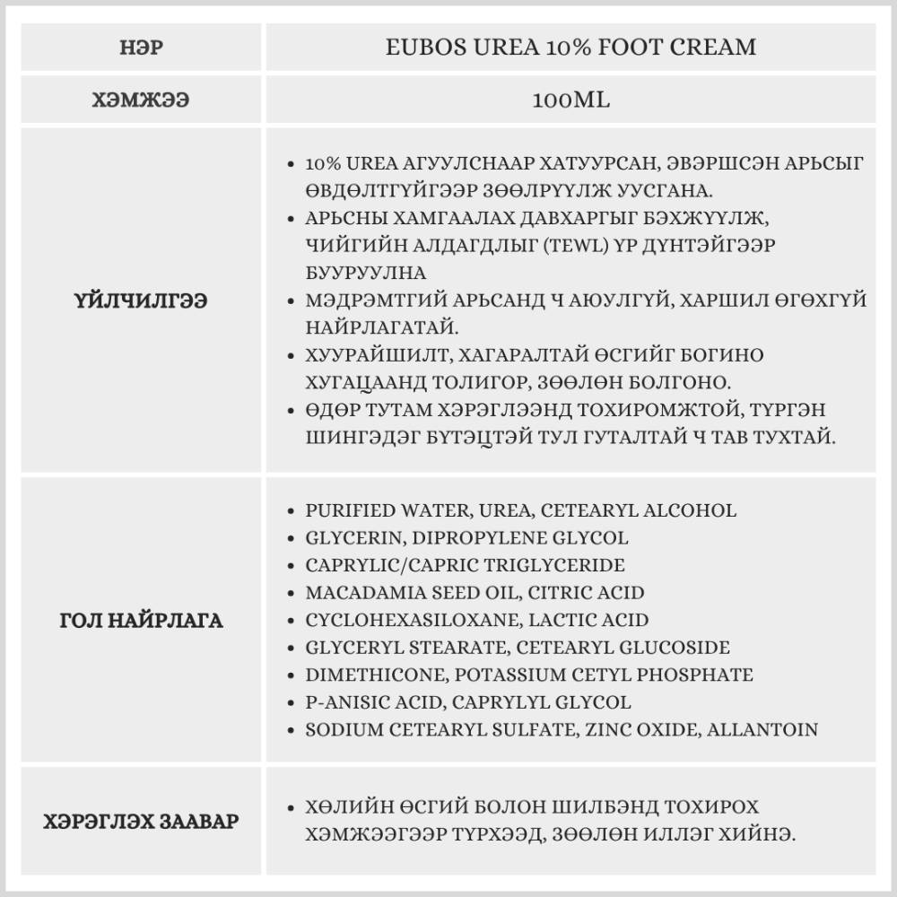Хатуурч хуурайшсан өсгийг гүнээс нь зөөлрүүлж, толигор болгох үйлчилгээтэй. Арьсны хамгаалалтын давхаргыг бэхжүүлж, чийг алдагдлыг бууруулна. Германы дерматологийн стандартад нийцсэн аюулгүй найрлагатай тул мэдрэмтгий арьсанд ч хэрэглэх боломжтой.