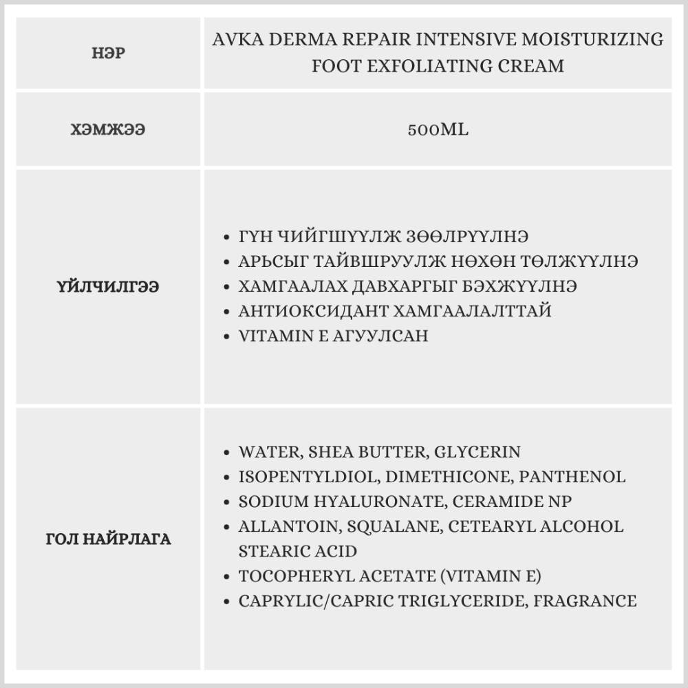 Хатуурсан өсгийг гүн чийгшүүлж, зөөлөн гуужуулна. Гэмтсэн арьсыг нөхөн төлжүүлж тайвшруулах тул мэдрэмтгий арьсанд тохиромжтой. Хамгаалалтын давхаргыг бэхжүүлж, эвэр дахин үүсэхээс сэргийлнэ.