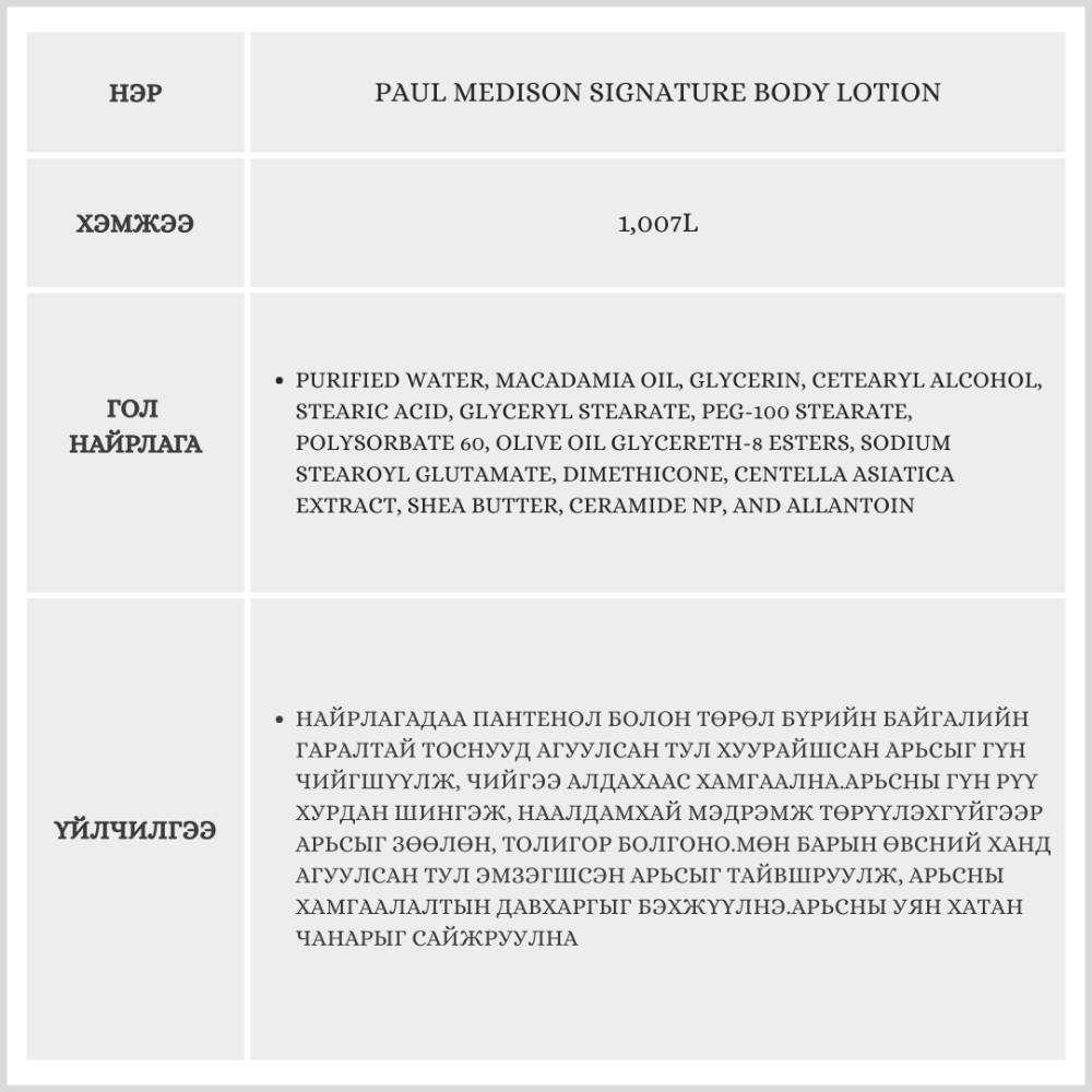 Энэхүү бүтээгдэхүүн нь арьсыг гүн чийгшүүлж, тэжээл өгч, нөхөн төлжүүлэх үйлчилгээтэй.Арьсны байгалийн pH түвшинд ойр найрлагатай тул арьсыг цочроохгүй. Бүх төрлийн арьсанд тохиромжтой.