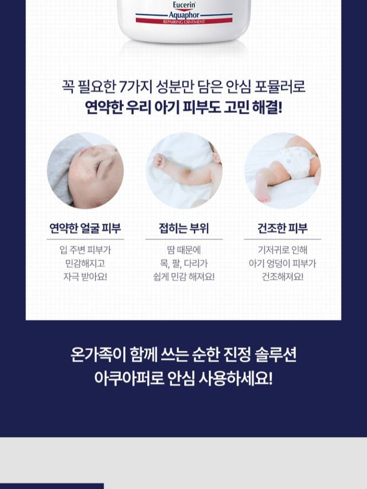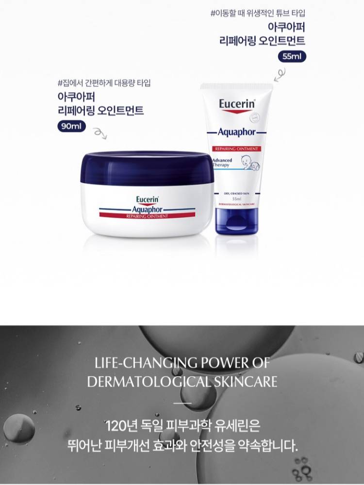Eucerin Aquaphor нь дэлхийн арьсны эмч нарын хамгийн их санал болгодог "SOS" тос бөгөөд water free буюу өтгөн бүтэцтэй тул чийгийг арьсанд маш сайн түгжинэ. Энэ нь ердийн лошионоос илүү үйлчилгээтэй бөгөөд арьсны гэмтсэн хэсгийг хамгаалж эрүүлжих явцыг хурдасгана.