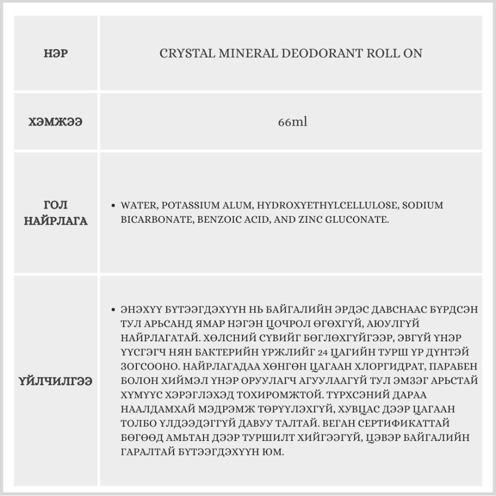 Хөлсний нүхийг бөглөхгүйгээр, эвгүй үнэр үүсгэгч бактерийг устгаж 24 цаг үйлчилнэ. Хувцас дээр толбо үлдээхгүй, наалдамхай биш, хурдан хатдаг.